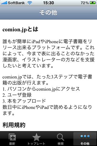 誰でも無料で参加可能な電子書籍プラットフォームを開設 —「comion.jp」のベータテストを開始。iPhone、iPadに対応予定— sumyappは、誰でも無料で、iPhoneやiPadに電子書籍を配信可能なサービス、「comion.jp」を開設しましたのでお知らせします。